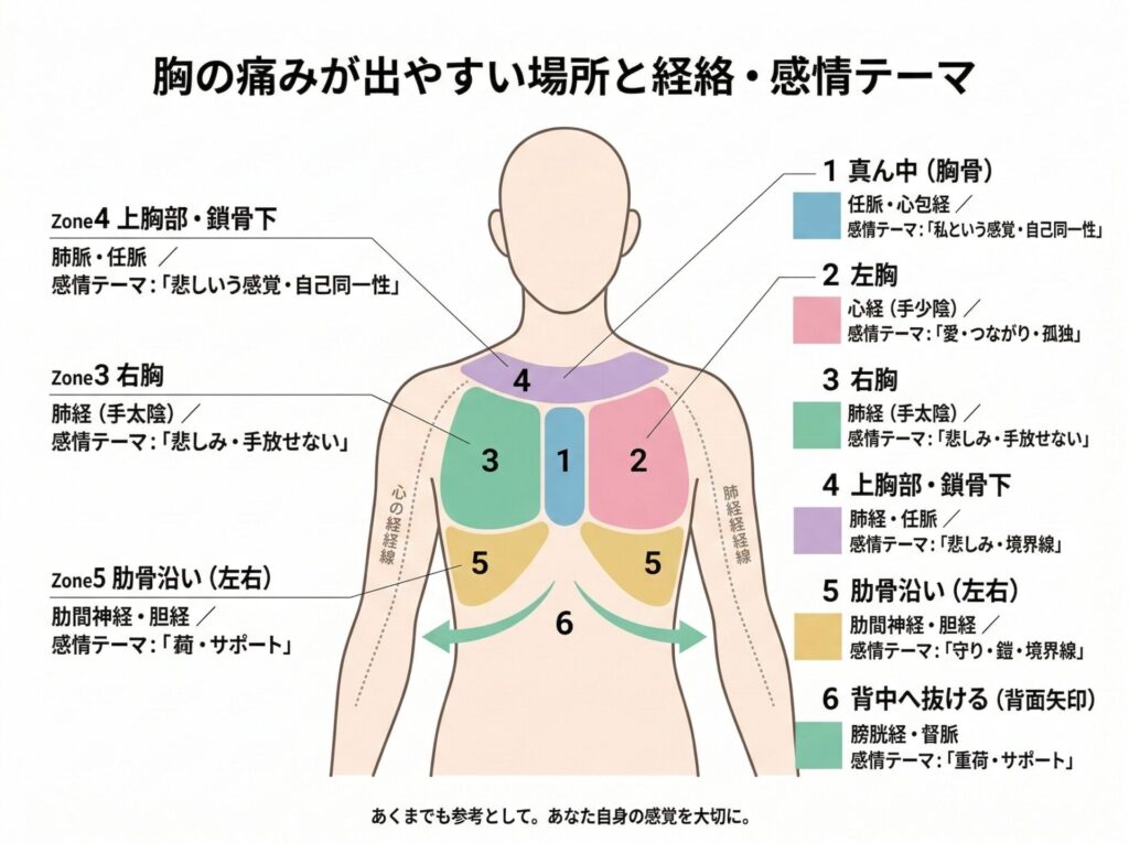 東洋医学で読む胸の痛み|心経・肺経と場所別感情テーマ